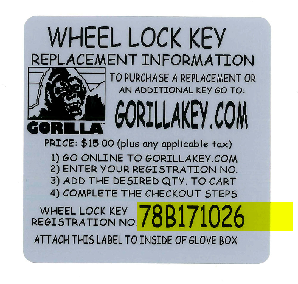Contact Gorilla to order replacement keys or to retrieve misplaced wheel lock registration numbers before ordering.
