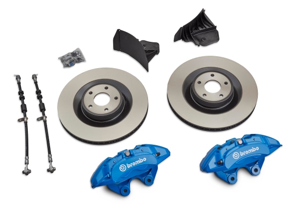 For drivers with a 2013-2018 Focus ST, this kit upgrades the front brakes with the original equipment from the 2016 Focus RS. It utilizes Brembo 4-Piston calipers finished in RS blue and 13.7" (347MM) vented RS brake rotors. The kit includes production RS brake pads, RS brake hoses, RS brake air deflector kit, and all needed installation hardware.