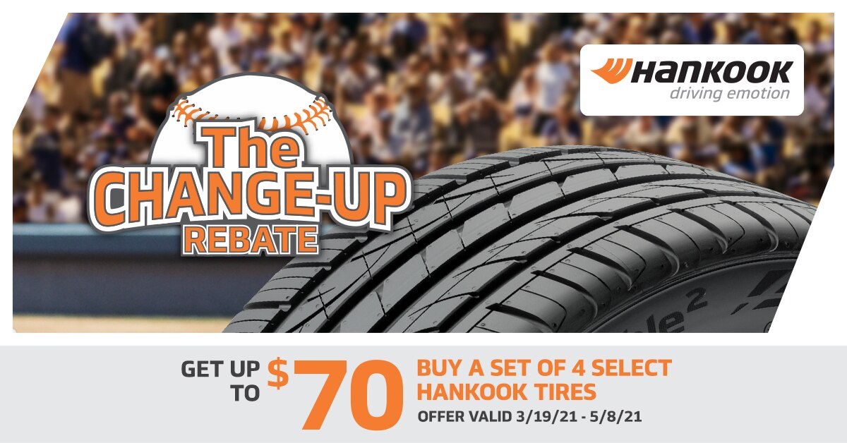 When you purchase a set of four (4) select Hankook tires within the same pattern you may be eligible to receive up to $70 via Hankook Prepaid Mastercard via online rebate. Offer valid on tires purchased from Tire Rack's in-stock inventory between 12:00 a.m. EDT March 19, 2021 and 11:59 p.m. EDT May 8, 2021.
