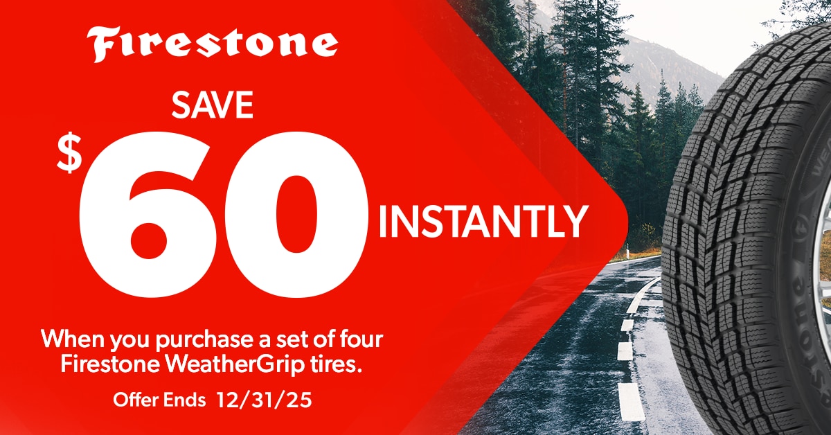 Special Offer Save $60 Instantly on Four Firestone WeatherGrip Tires