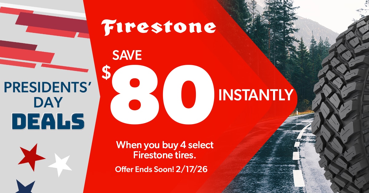 Special Offer Presidents' Day Savings : Save $80 Instantly on Four Select Firestone Tires