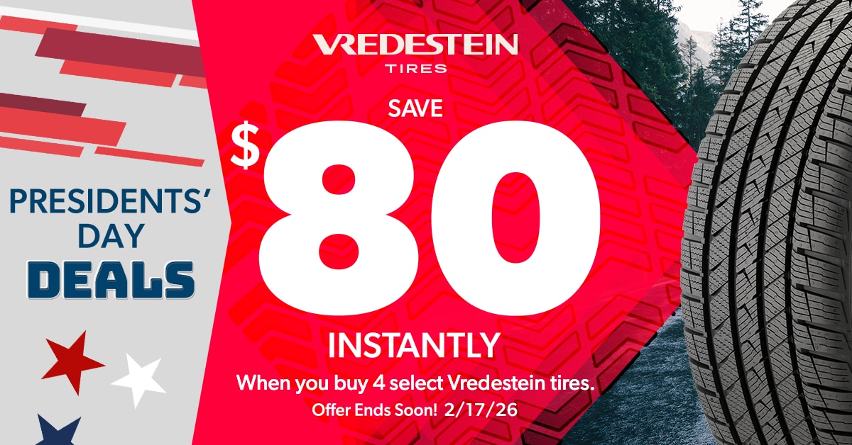 Get $80 Instant Savings when you purchase a set of four select Vredestein tires from Tire Rack's in-stock inventory. Offer valid until 11:59 p.m. EST February 17, 2026.