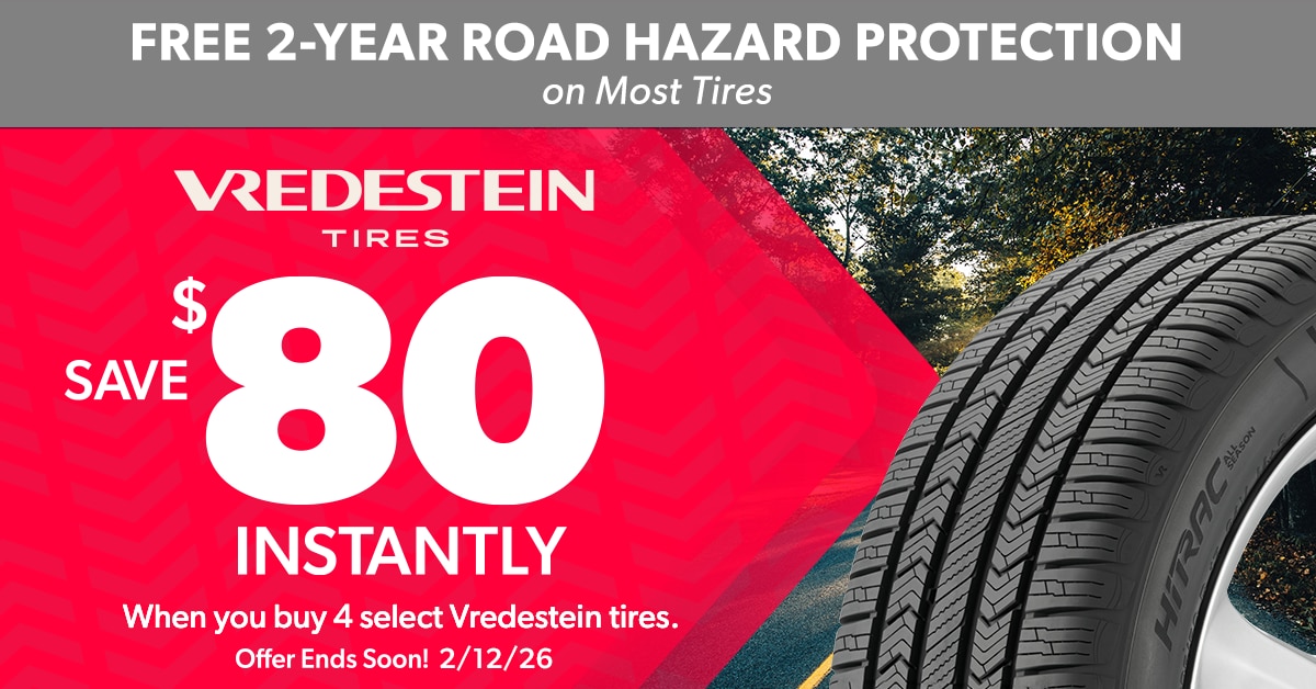 Get $80 Instant Savings when you purchase a set of four select Vredestein tires from Tire Rack's in-stock inventory. Offer valid until 11:59 p.m. EST February 12, 2026.