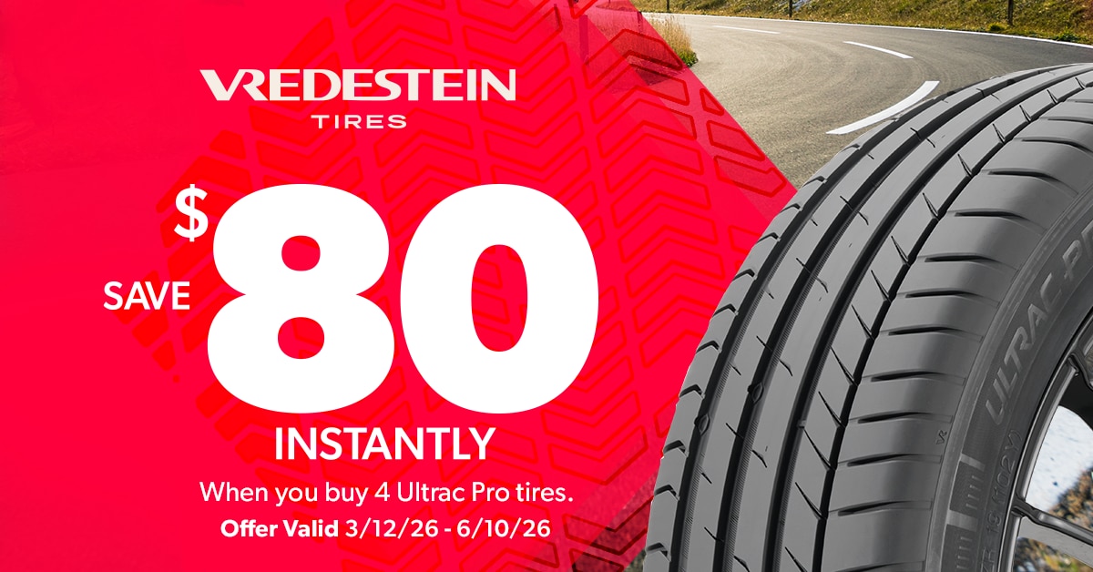 Get $80 Instant Savings when you purchase a set of four Vredestein Ultrac Pro tires from Tire Rack's in-stock inventory. Offer valid until 11:59 p.m. EDT June 10, 2026.