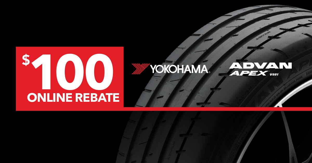 When you buy a set of four (4) Yokohama ADVAN Apex V601 tires you may be eligible to receive a $100 Yokohama Visa® Prepaid Card or Visa® Virtual Account by online rebate. Tires must be purchased from Tire Rack's in-stock inventory between 12:00 a.m. EST March 1, 2020 and 11:59 p.m. EDT March 31, 2020.