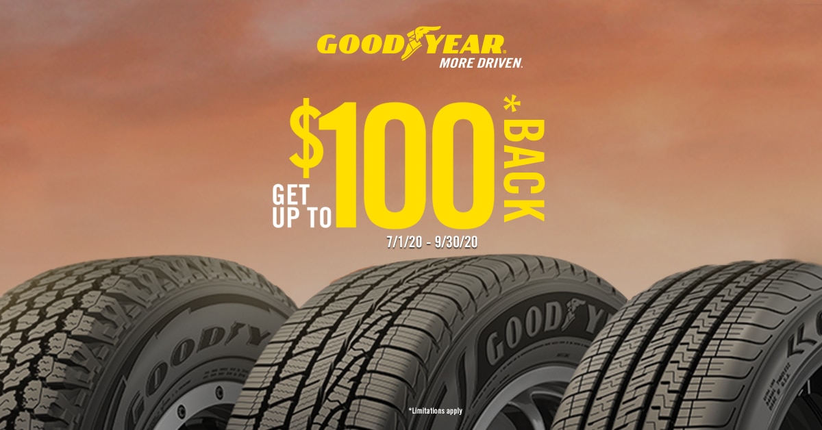 When you purchase a set of four (4) select Goodyear tires you may be eligible to receive up to a $100 Goodyear Prepaid MasterCard® Card by mail-in rebate. Offer valid on tires purchased from Tire Rack's in-stock inventory between 12:00 a.m. EDT July 1, 2020 and 11:59 p.m. EDT September 30, 2020. Orders for tires that are not in stock during the offer period are not eligible for this offer.