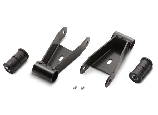For drivers with a 2021-2024 F-150 2WD or 4WD Regular Cab, SuperCab, or SuperCrew, this kit reduces rear ride height by approximately 1.5", allowing for more of a leveled, sport truck stance. The kit includes laser-cut steel lowering shackles with urethane bushings.