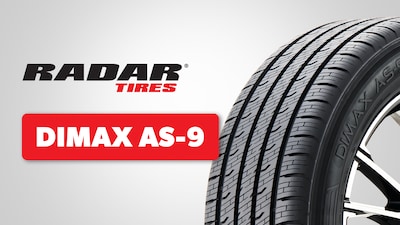 The Dimax AS-9 is Radar’s Grand Touring All-Season tire for sedans, sport coupes, crossovers, and SUVs. Built to perform in various weather conditions, including light snow, it offers everyday drivers a great blend of driving pleasure, performance, and safety year-round.